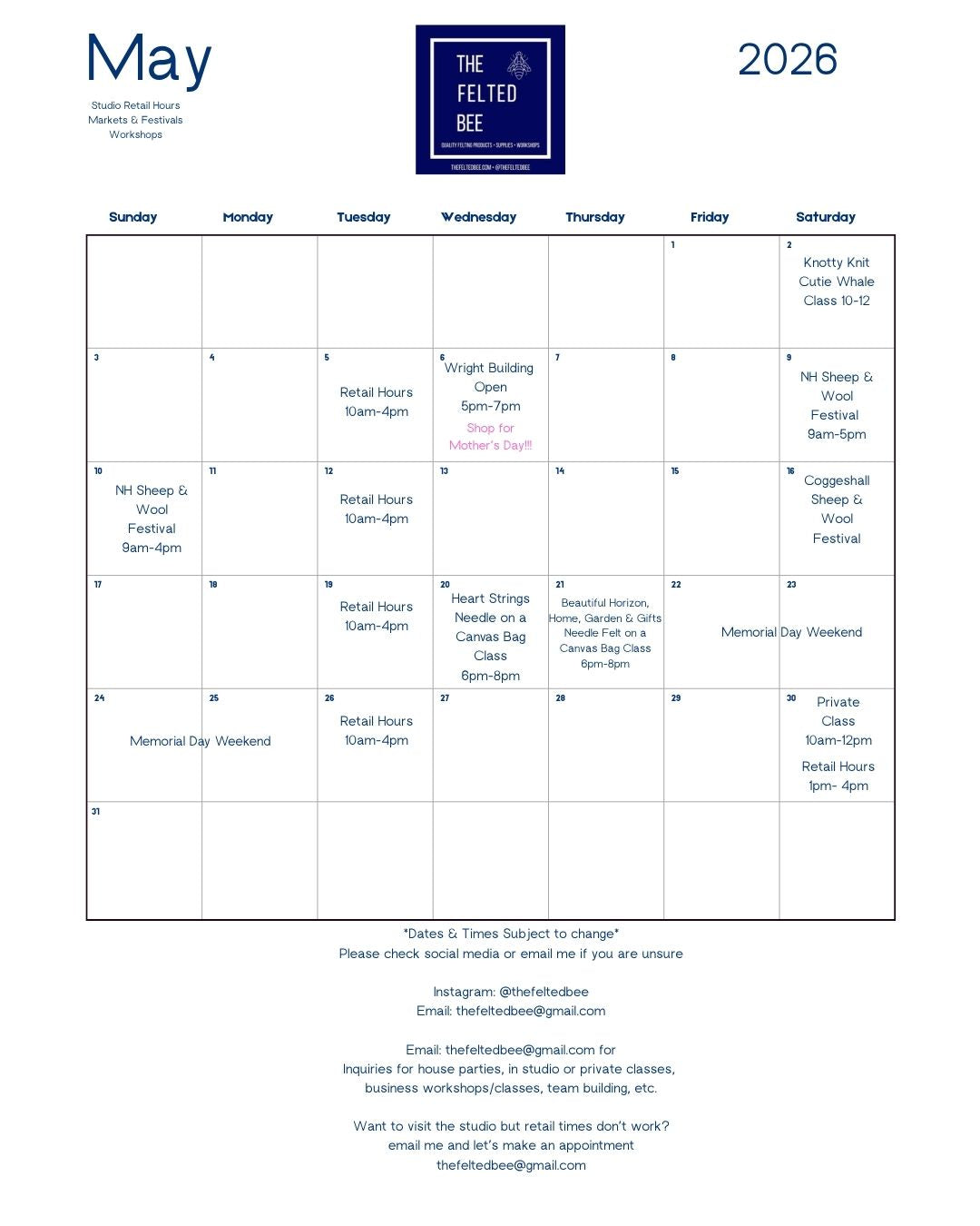Please email us if you would like to come see the studio or have any questions regarding classes, wool and DIY needle felting kits.