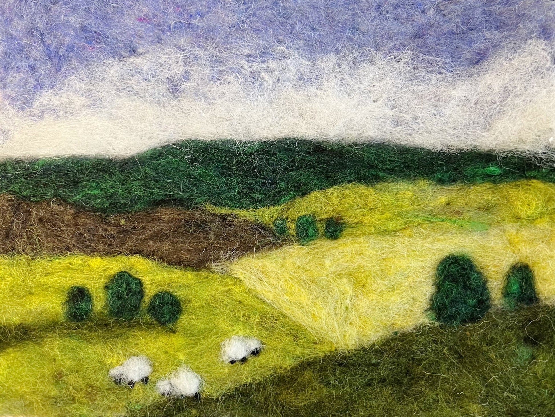 This wool painting kit includes enough high quality wool batt and a pre-felted wool sheet of fabric to make an approximate 5" x 7" wool painting. There will be wool left over and in the online tutorial, we give you suggestions on how to create another landscape!